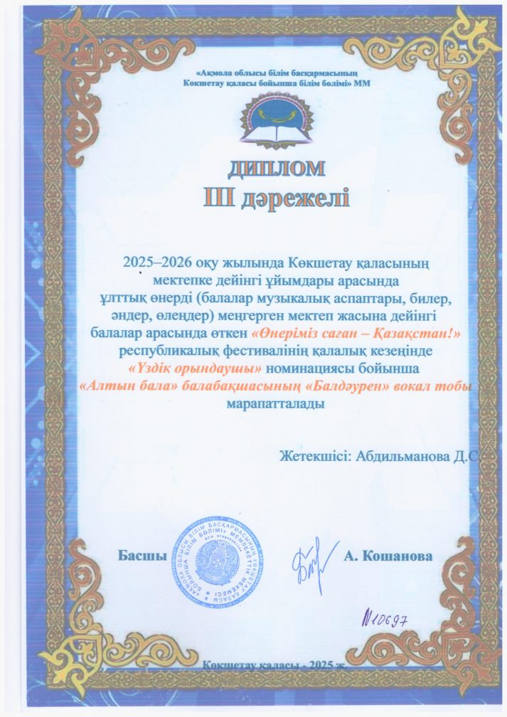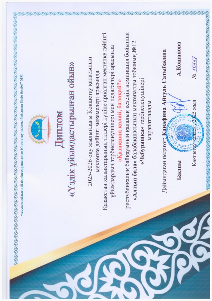 "Тілге бойлау" бағдарламасын іске асыру бойынша келесі іс-шаралар өткізіледі: Қазақшаң қалай, балақай? Тақпақшылар сайысы, тақырыптық сабақтар, әр түрлі конкурстарға қатысу "Абай оқулары", "Мағжан оқулары", "Өнеріміз саған-Қазақстан"